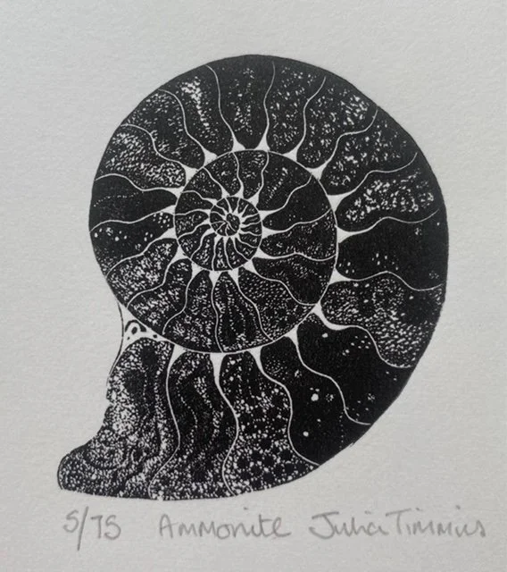 This engraving was inspired by my love of fossils, particularly ammonites!